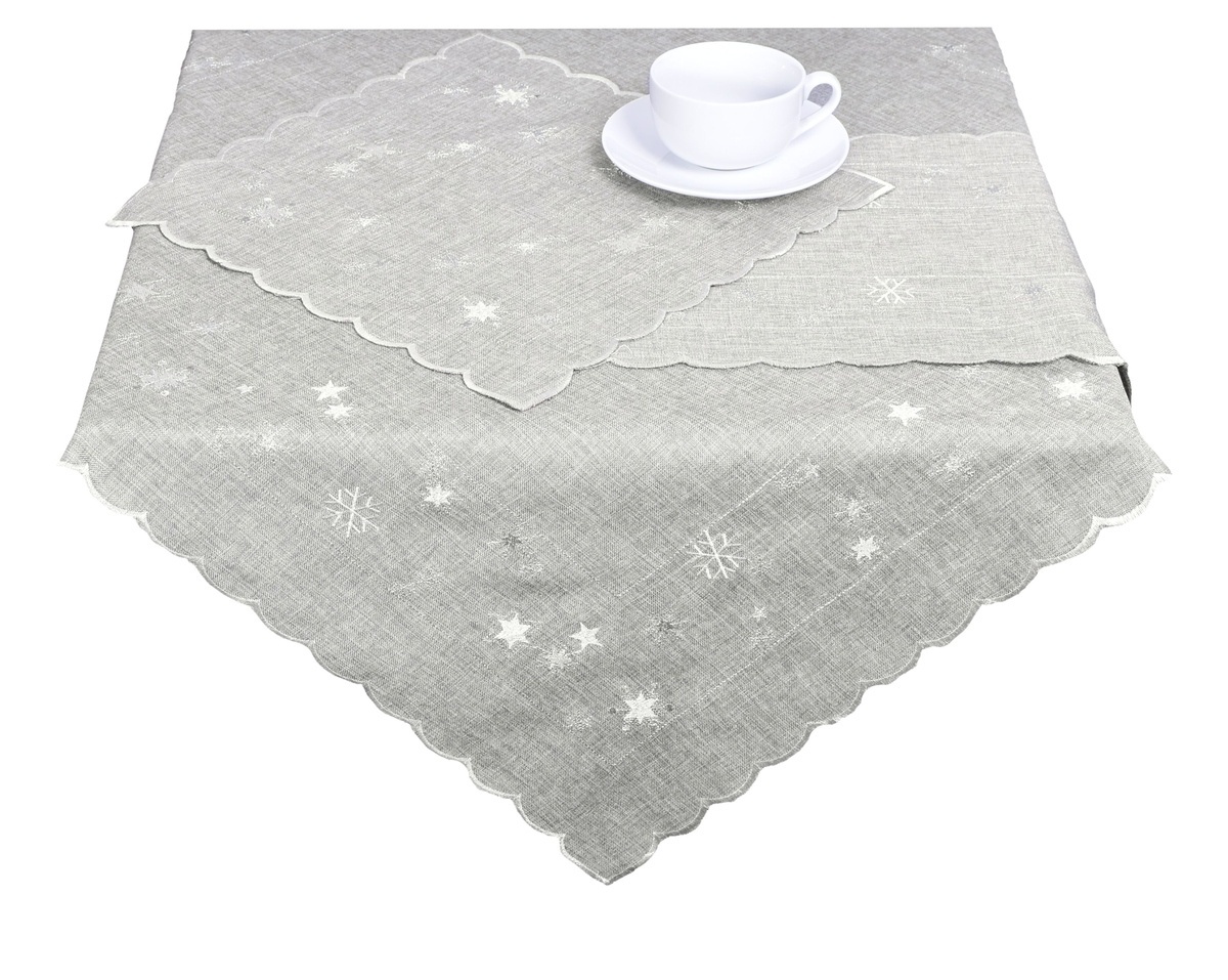 Exkluzivní dekorační vyšívaný ubrus přinese do vašeho domova kouzlo svátků a vytvoří tu pravou slavnostní atmosféru. Ubrusy jsou vyrobeny z kvalitní šedé tkaniny, která dodává elegantní vzhled. Jemný stříbrno bílý motiv vloček přidává nádech luxusu, zatímco bílý lem podtrhuje jeho sofistikovaný...