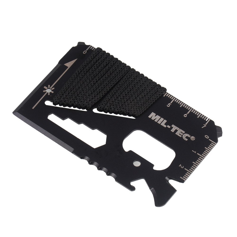 Mil-Tec - Karta surwiwalowa z linką Paracord i pokrowcem - Czarna - 15408102