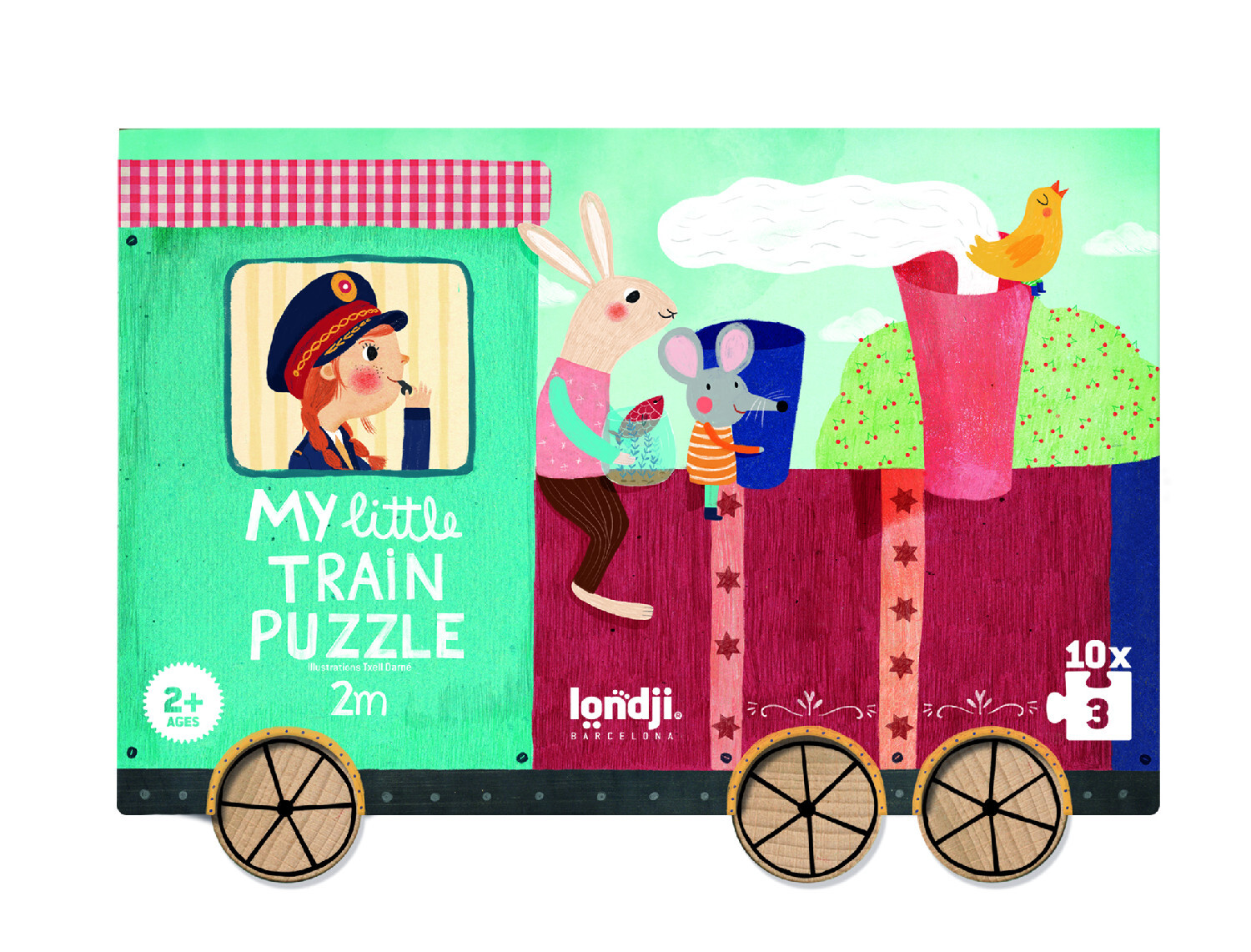 Sada se skládá z deseti 3 dílných puzzle ve tvaru železničních vagónů a deseti dřevěných žetonů s čísly od 1 do 10.Děti poskládají vagon a vloží do něj žeton, který odpovídá počtu cestujících.Vhodné pro děti od 2 let. przeczytaj całość