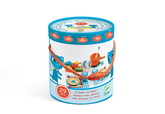 Jídelní sada obsahuje dva talířky s designem koťátka, dva příbory, dvě lžičky a dvě skleničky. Součástí balení je i nalévací nádoba na džus, velká miska s držadlem se servírovací vidličkou, 12 ks surovin pro vytvoření chutných salátů a 4 druhy prostírání. Pro děti od 18 měsíců. Vše zabaleno v praktické kulaté dóze o průměru 17,5cm s držadlem, vždy připravené na cesty.