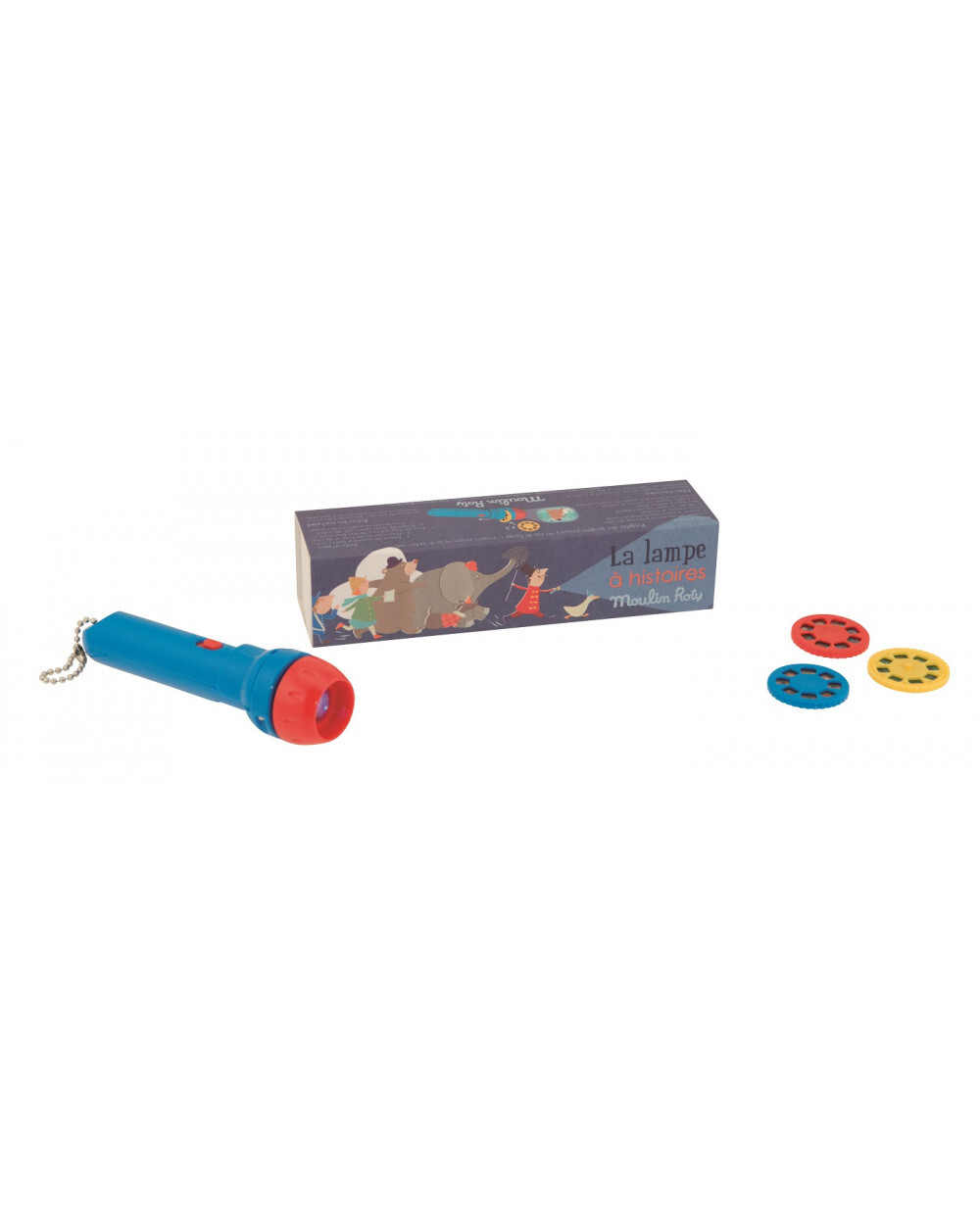 Nechte na stěně v pokoji rozehrát jedinečné příběhy, které podněcují dětskou fanzatii a naladí je na usínání. Pomocí malého projektoru můžete promítat něžné ilustrace. Set obsahuje baterku a tři promítací kotouče. Každý kotouč obsahuje 8 obrazů. Obrázky se mění otáčením hlavy promítačky, pro zaostření použijte přední část baterky, pootočením zaostříte obraz.