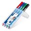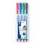 Odkryj uniwersalny i niezawodny marker Lumocolor 305 F marki STAEDTLER, który jest idealnym wyborem do biura, szkoły i domu. Dzięki temu zestawowi czterech niepermanentnych kolorów ożywisz swoje notatki, tablice i prezentacje, a Twoje komunikaty będą zawsze wyraźne i czytelne.