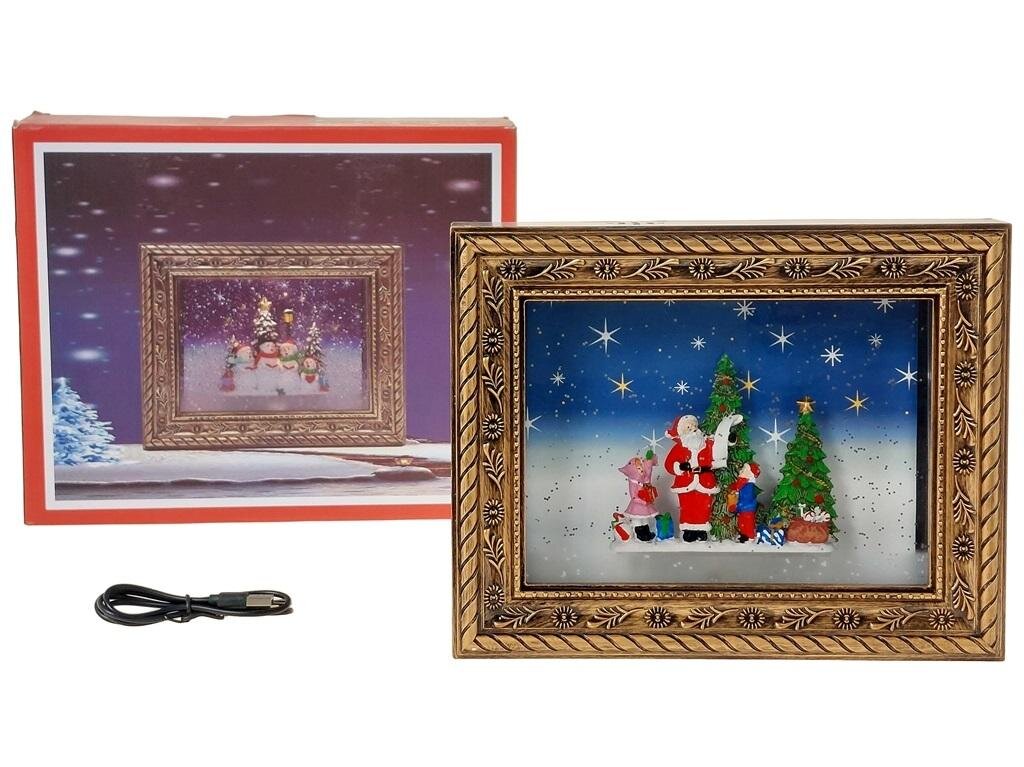 obrazek świąteczny 24x19x4,5cm ze światłem i dźwiękiem, kabel USB, z możliwością zawieszenia; BOX przeczytaj całość