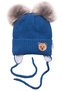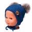 Dětská zimní čepice s fleecem Teddy Bear- chlupáčk. bambulky - tm. modrá, šedá; 56-68 (0-6 m)