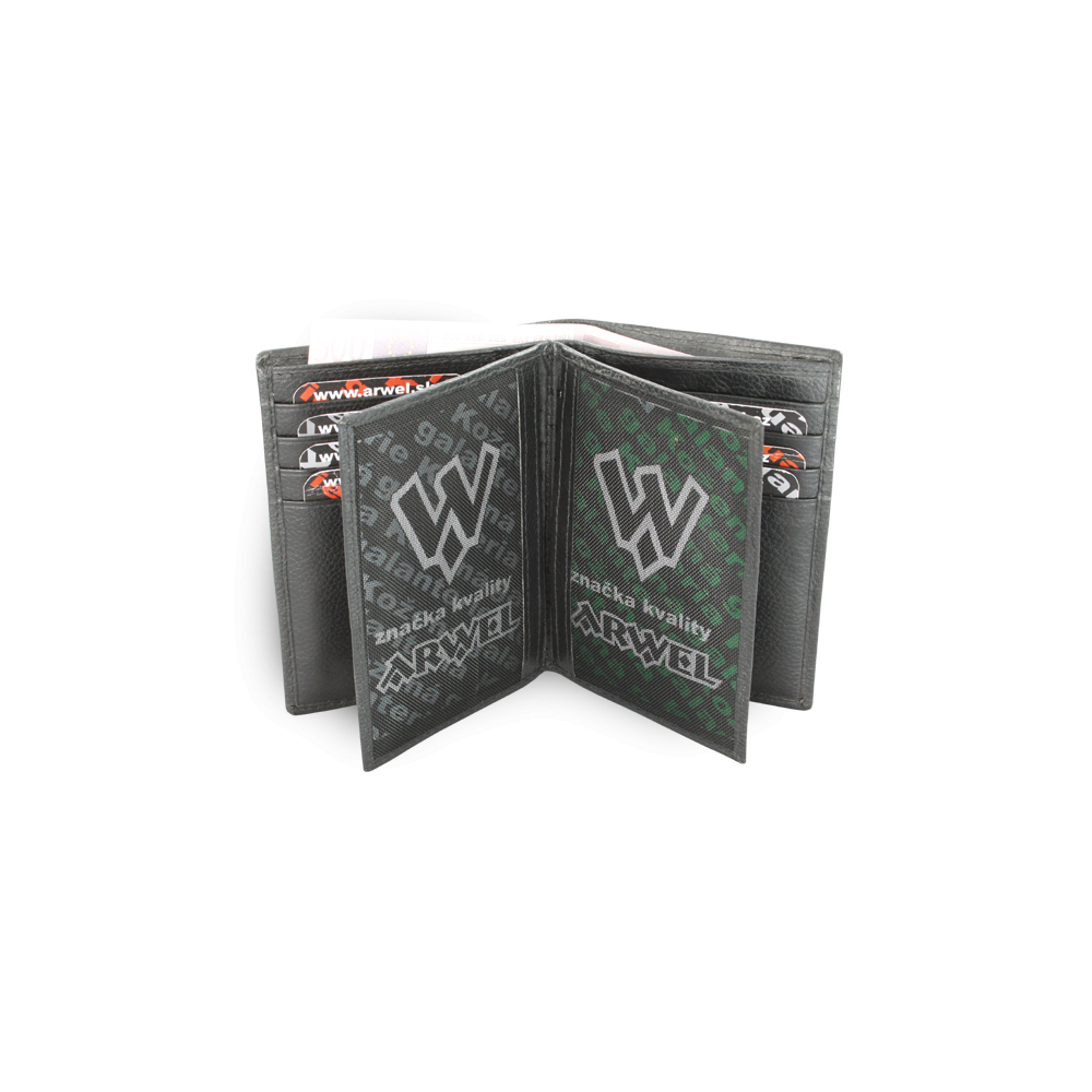 Kožená pánská dokladovka od české značky Arwel.Vlastnosti:• přihrádka na bankovky• 16 kapes na kreditní karty• 2 průhledné kapsy• 4 boční kapsyMateriál: pravá hovězí kůže (PDM) przeczytaj całość