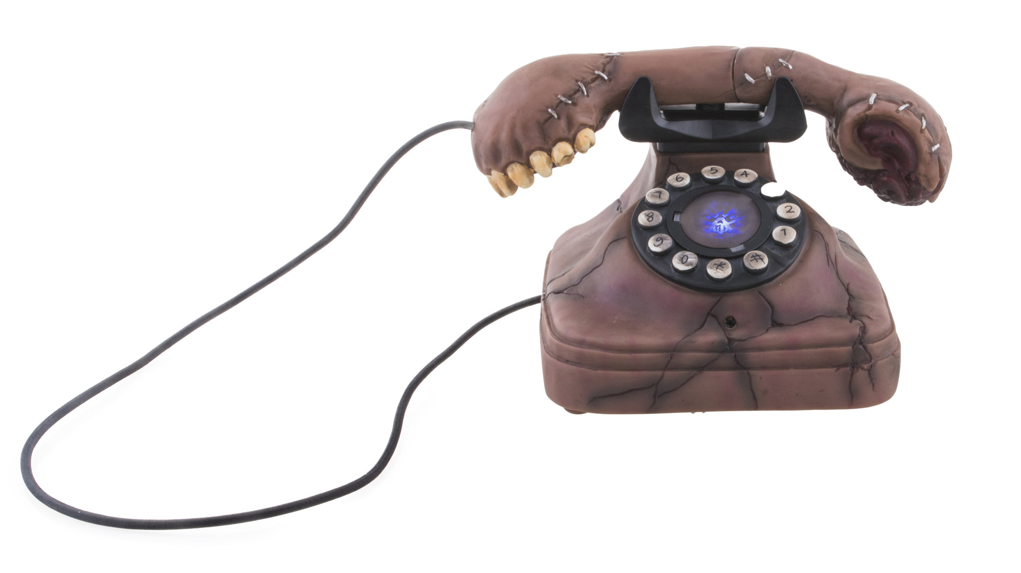 Dekoracja na Halloween w formie przerażającego telefonu złożonego z ludzkich szczątków. Jeśli zadzwoni i odbierzesz połączenie, usłyszysz głosy z zaświatów. Zasilanie za pomocą baterii AA (nie są dołączone), waga 1,5 kg.Waga: 1,5 kgKolor: brązowy przeczytaj całość