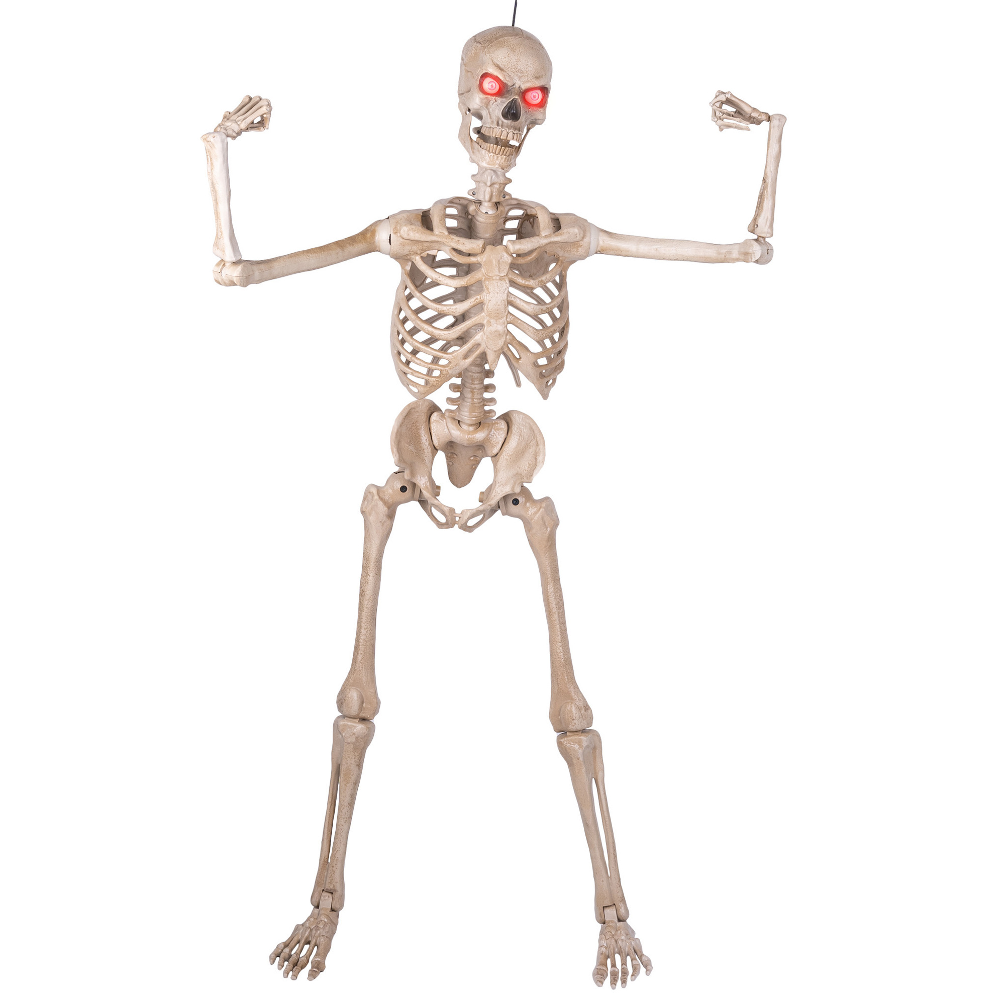 Ohebná kostra má svítící oči a je vysoká 150 cm. Na 3 AAA baterie (nejsou součástí).Vlastnosti: SvětloTyp baterie: AAAPočet baterií: 3 (nejsou součástí balení)Rozměry: 150 cm przeczytaj całość