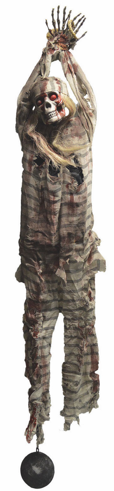 Halloweenská dekorace v podobě kostry vězně se svítícíma očima. Zabudované červené LED v očích, napájení pomocí baterií (3x knoflíková baterie typu LR44 - nejsou součástí dodávky). Výška 210 cm.Materiál: polyester, PVCNapájení: 3x knoflíková baterie LR44 (není součástí balení)Výška: 210... przeczytaj całość