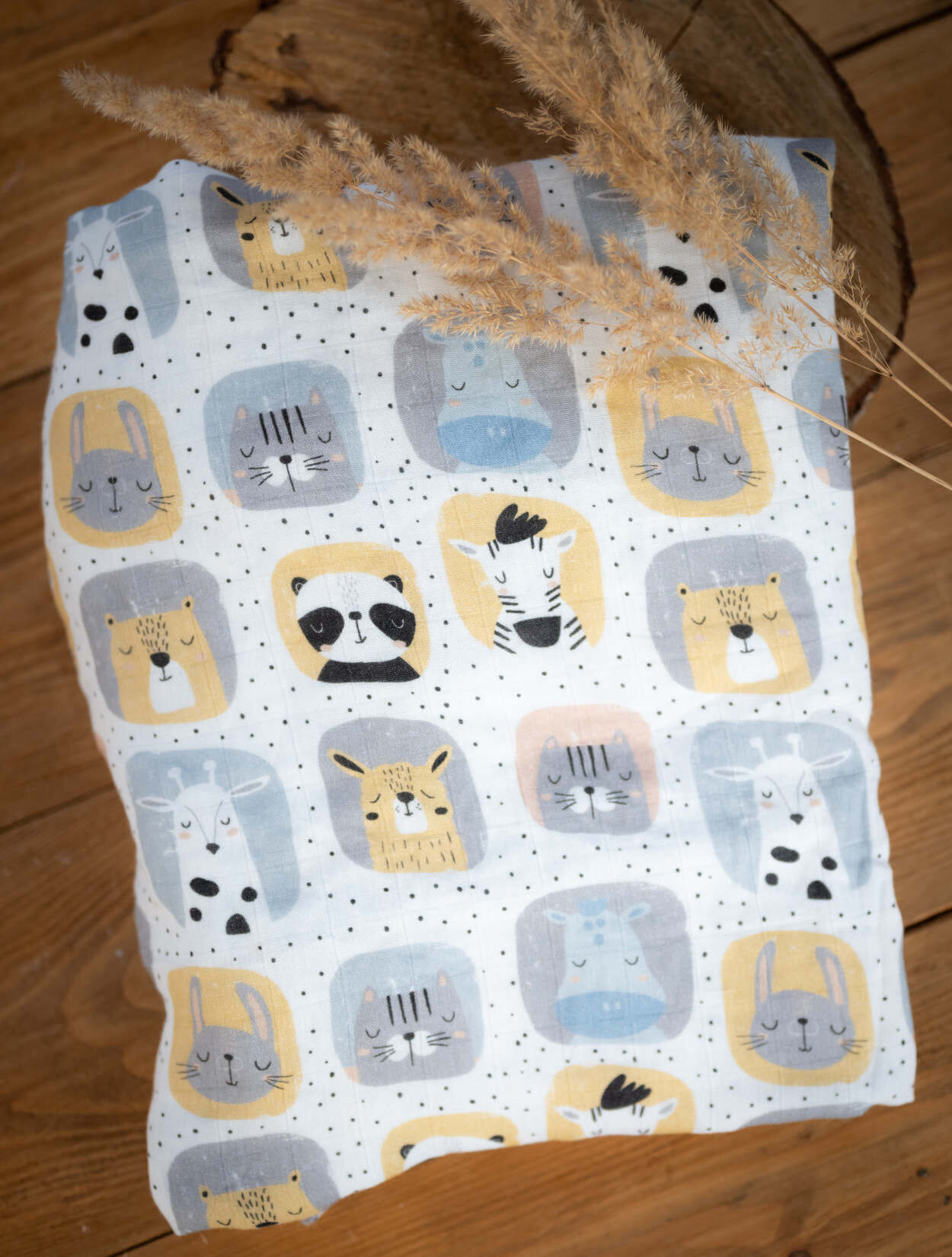 Bambusová zavinovací plena Digitisk - Zvířátka ze zoo 120 x120 cm