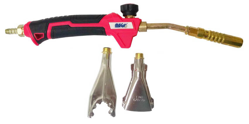 Zestaw palników do prac domowych i majsterkowania. Zawiera rękojeść z palnikiem 17 mm, palnik płaski 40 mm, palnik szczypcowy do łączenia rur o średnicy do 22 mm. Zużycie: 0,21-0,43 kg/h (w zależności od podłączonego palnika) Moc: 3-6 kW (w zależności od podłączonego palnika) Maksymalna temperatura 1800°C. Rodzaj paliwa: propan. Źródło: butla gazowa 2 lub 10 kg