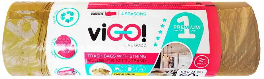 viGO! Premium odpadkový pytel LD se zatahováním 60l/10ks - parfemovaný GOLD
