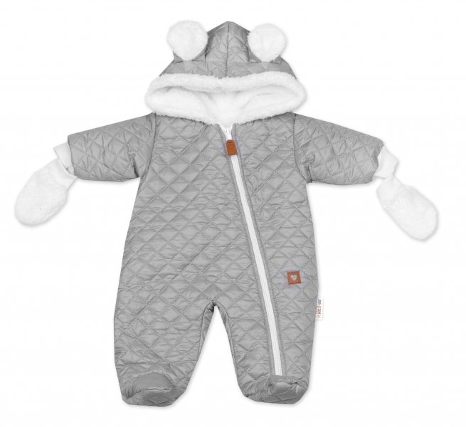 Zimní prošívaná kombinéza s chlupáčkovou podšívkou + rukavičky, Love, šedá, vel. 62; 62 (2-3m)