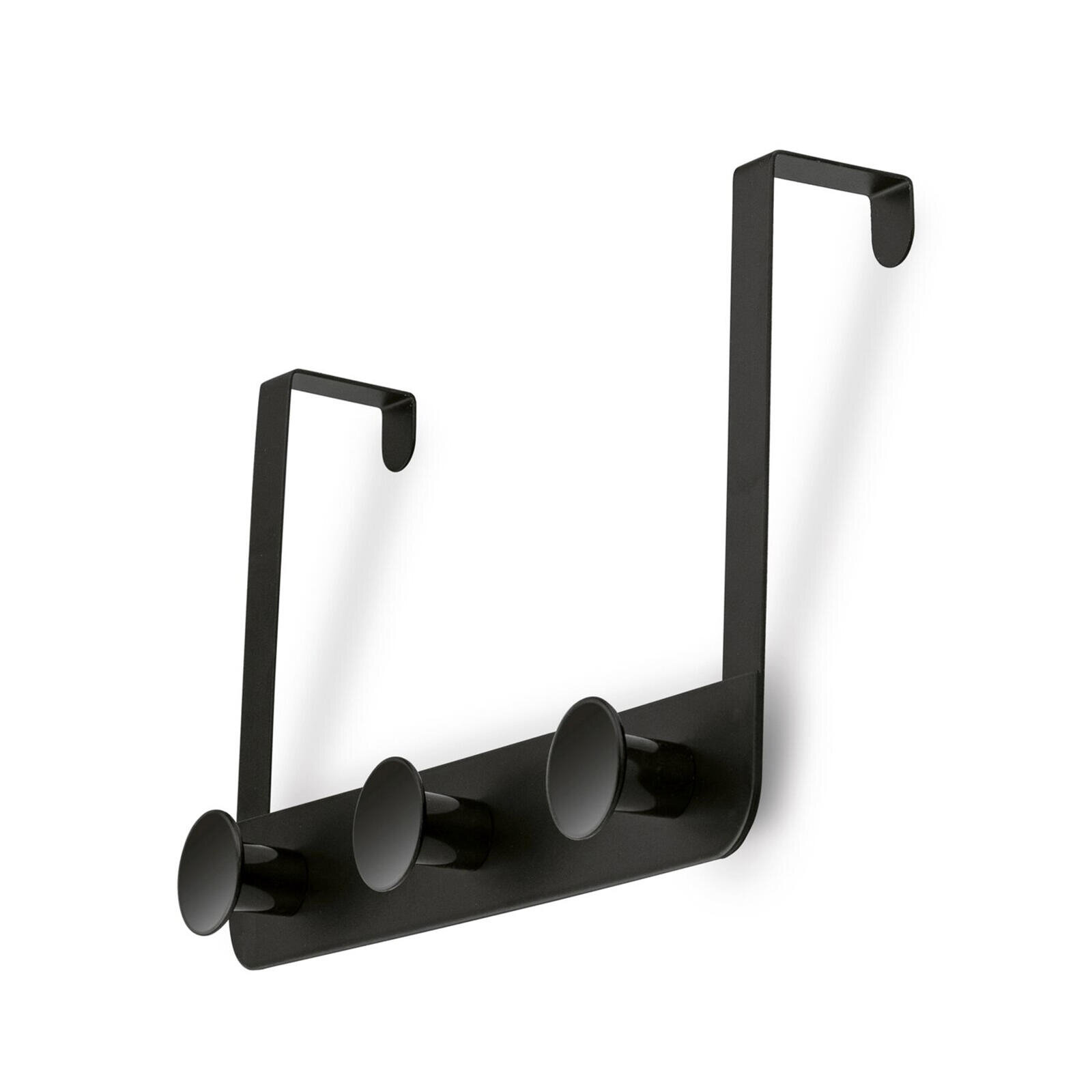 Wieszak na drzwi 3 haczyki 30 x 20 cm, metalowy. Czarny.