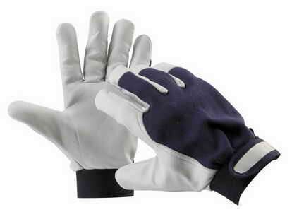 PELICAN BLUE - rukavice šité z jemné lícové kozinky v dlani, modré bavlněné tkaniny na hřbetu a s manžetou na suchý zip velikost 9 przeczytaj całość