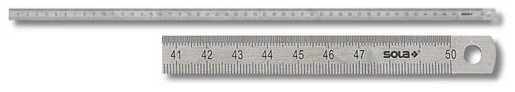 SOLA - LSS 500 - Stalowa linijka 500mm Właściwości:Wyjątkowo elastyczna linijka odpowiednia do pomiaru zaokrąglonych kształtówBardzo czytelna, odporna na ścieranie skalaSzczególnie wytrzymała sprężynowa stal nierdzewnaWysoka rozdzielczość skali dla wyjątkowo precyzyjnych pomiarów Dane techniczne: Materiał: Sprężynowa stal nierdzewnaPowierzchnia: SzlifowanaSkala: mm/cm, dwuczęściowa, obustronnie trawionaPodziałka skali: 0,5 mmSzerokość: 13 mmGrubość: 0,5 mm