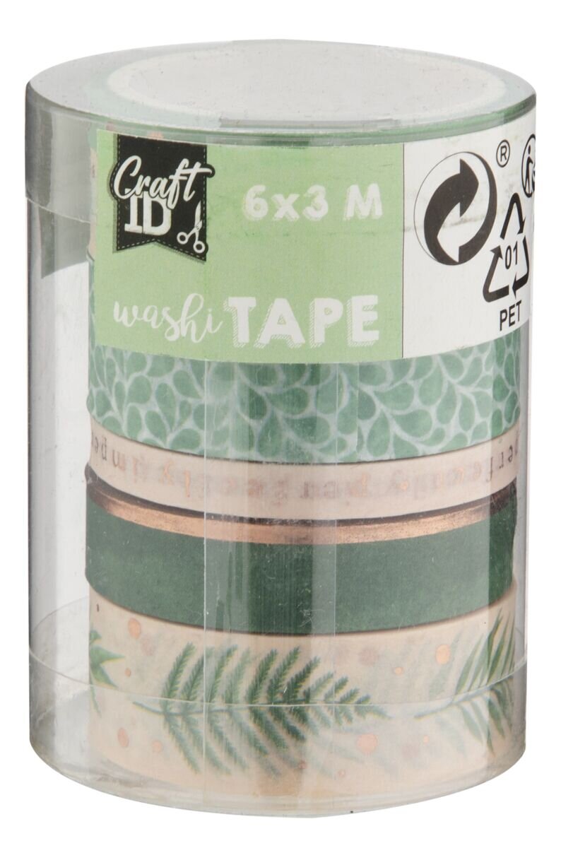Dekorační lepicí páska - Washi pásky zelené listy, 6 ks x 3 m