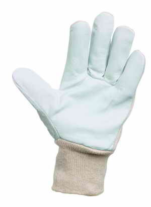 PELICAN PLUS - rukavice pracovní šité z jemné lícové kozinky v dlani, bílé bavlněné tkaniny na hřbetu a s nápletem velikost 9 przeczytaj całość