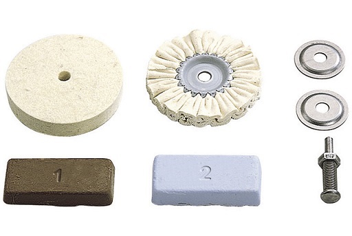 Nadaje się do materiałów: w pełni odpowiedni do blachy, metali nieżelaznych, drewna, plastiku, karoserii. Cechy: praktyczny zestaw „wszystko w jednym” do polerowania zabrudzonych, przygaszonych lub zardzewiałych powierzchni metalowych. Filcowy krążek polerski i pasta czyszcząca do usuwania zanieczyszczeń. Krążek z sukna i pasta polerska do uzyskania wysokiego połysku. Dane techniczne: kierunek obrotów - prawoobrotowy. Maks. prędkość obrotowa: 3 000 obr./min. Zakres dostawy: 1 krążek z sukna, otwór 10 mm, Ø 85 mm; 1 filcowy krążek polerski, otwór 10 mm, Ø 85 mm; 1 trzpień montażowy do otworu 10 mm; 1 brązowa pasta polerska do wstępnego polerowania; 1 niebieska pasta polerska do wykończenia. Elementy w zestawie: 5-częściowy.