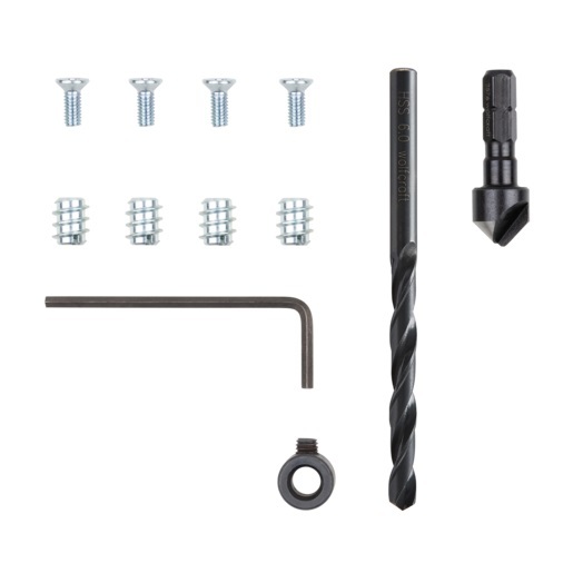 K opravě vytržených šroubů. kompletní opravárenská sada pro opravu stržených šroubů na skříni s ilustrovanými pokyny krok za krokem. 1 válcovaný vrták HSS, Ø 6 mm, s odpovídajícím hloubkovým dorazem, 1 záhlubník pro zahloubení otvoru pro šroubování pod omítku 2 šrouby s drážkou pro obnovení...