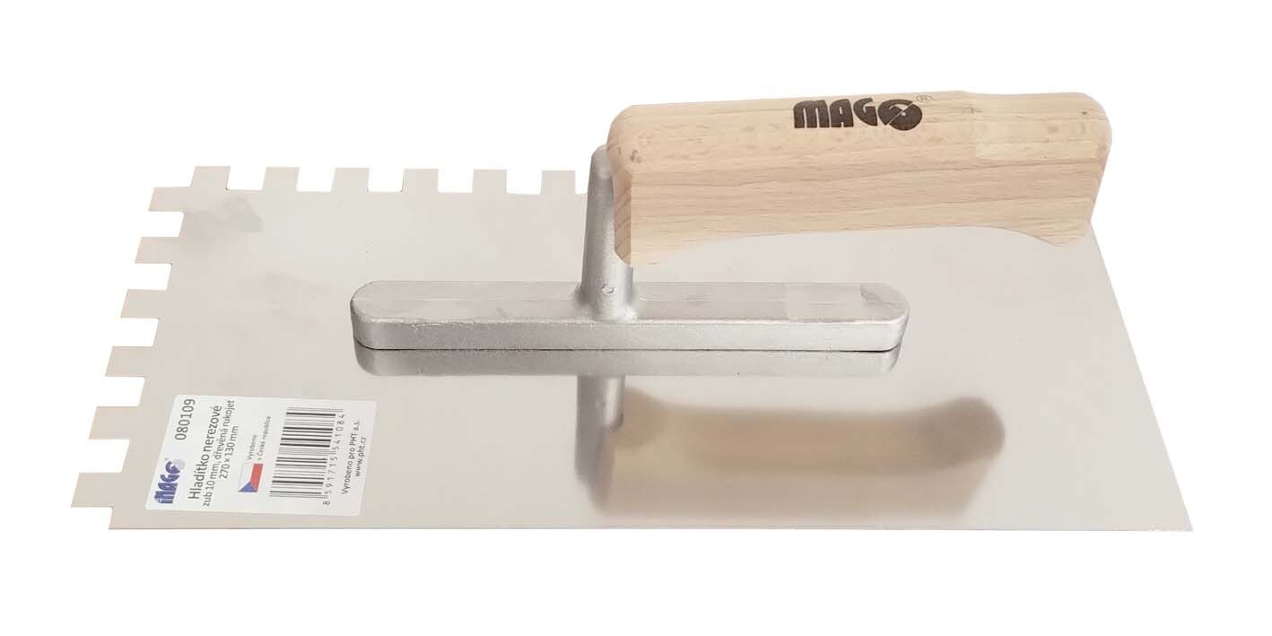 Hladítko nerezové 270x130mm zub 10mm - dřevěná rukojeť