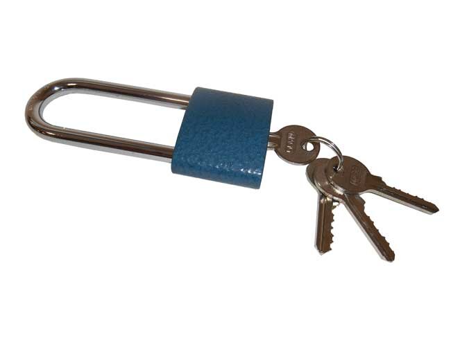 Visací zámek litina 52mm - modrý - prodloužený závěs