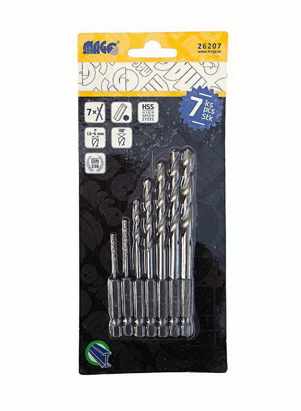 Vrtáky HSS univerzální, šestihranný úchyt 7 ks (1,5-6,0mm)