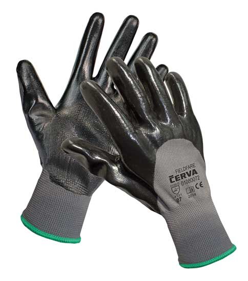 CERVA - FIELDFARE rukavice pletené bezešvé máčené ze 3/4 v černém nitrilu - velikost 9