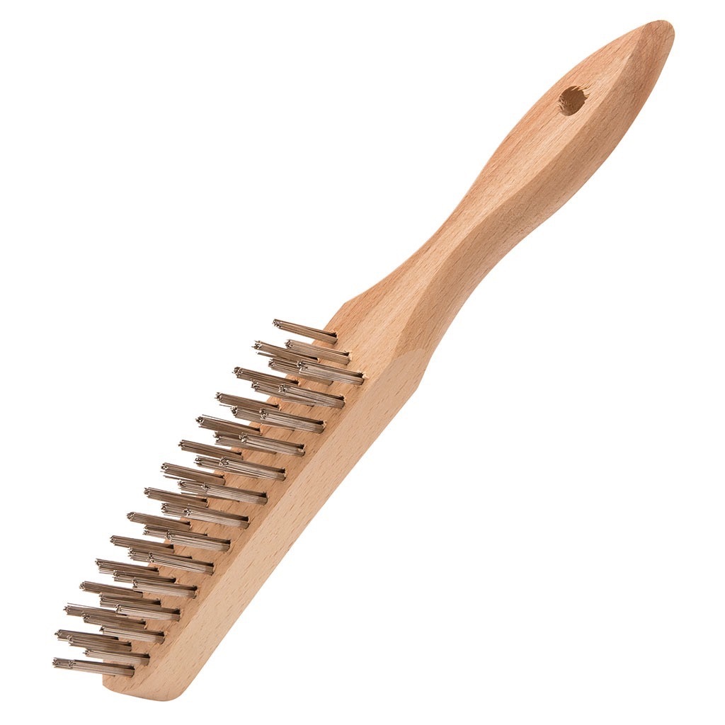 KART - ruční kartáč třířadý - nerez hladký 0,30mmRuční kartáč se zahnutou dřevěnou rukojetí, osazený hladkým nerezovým drátem o průměru 0,35 mm, ve třech řadáchVýroba v ČR przeczytaj całość