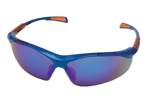 Okulary NELLORE o sportowym wyglądzie, klasa optyczna 1, z poliwęglanowym wizjerem z powłoką przeciw zarysowaniom i parowaniu (klasa F zgodnie z normą EN 166), ochroną przed uderzeniami o niskiej energii oraz regulowaną długością zauszników. Lustrzany wizjer posiada ochronny filtr przeciwsłoneczny zgodny z normą EN 172. AS = ochrona przed zarysowaniem AF = ochrona przed parowaniem