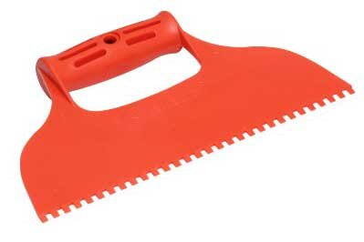 Stěrka plastová zub 4x6mm 235mm oranžová- natahování jemných omítek a lepidel na malých plochách- plastová- ergonomická, profilovaná rukojeť- všechny typy zdících směsí przeczytaj całość