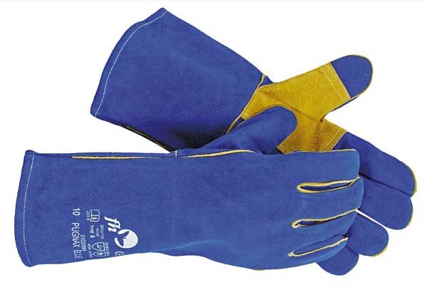 PUGNAX BLUE - rukavice celokožené svářečské - velikost 10. Celokožené svářečské rukavice z hovězí štípenky o délce 35 cm s výstuhou ve svírací části mezi dlaní a palcem. Šité Kevlarovou nití. przeczytaj całość