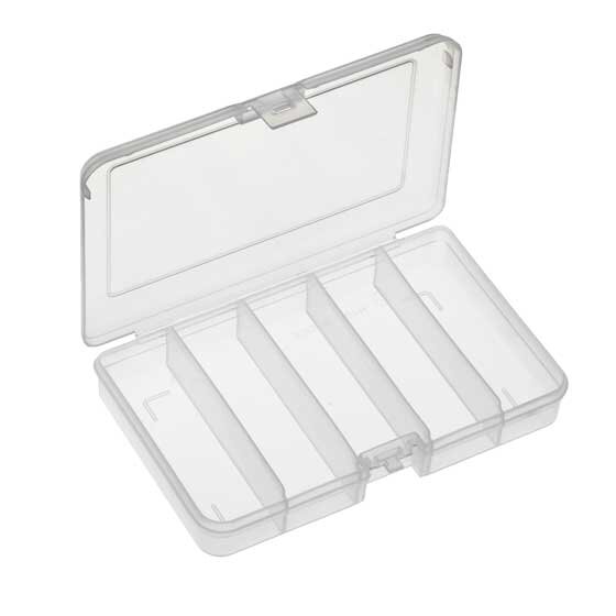 Plastowy organizer, wymiary zewnętrzne: 165x112x31 mm. 5 przegródek. Przezroczysty kolor. przeczytaj całość