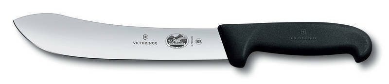 Mäsiarsky nôž so širokou špičkou, fibroxovou rukoväťou a dĺžkou čepele 20 cm.