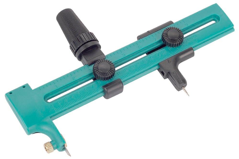 Opis produktuTen wycinacz pozwala na wykonywanie precyzyjnych cięć w kształcie koła o średnicy do 23 cm. Igła centrująca zapewnia stabilne podparcie, a ostre ostrze na końcu narzędzia niezawodnie wycina okrągłe kontury w papierze, folii, skórze i wielu innych materiałach. Aby zmienić średnicę koła, można przesunąć igłę centrującą po prowadnicy i zablokować ją śrubą mocującą. Dzięki wbudowanej skali dokładnie ustawisz rozmiar. Rękojeść pełni także funkcję pojemnika na zapasowe ostrza - dołączone są dwa sztuki. ZastosowanieW pełni odpowiedni cienka tektura, materiały hobbystyczne Cechyśrednicę można regulować do maksymalnie 23 cm, co umożliwia tworzenie wielu rozmiarów wycinków okrągłych wbudowana skala do precyzyjnego ustawienia średnicy ostre ostrze do cięcia papieru, folii, skóry i wielu innych materiałów rękojeść z wbudowanym pojemnikiem na ostrza do bezpiecznego przechowywania zapasowych ostrz łatwo obsługujący śruba blokująca do wymiany ostrza bez użycia narzędzi Dane techniczneWysokość ostrza 22 mmŚrednica 40 - 230 mmGrubość ostrza 0,5 mmMateriał Obudowa z tworzywa sztucznego Dodatkowe informacje o produkcie w tym 2 zapasowe ostrza w pojemniku