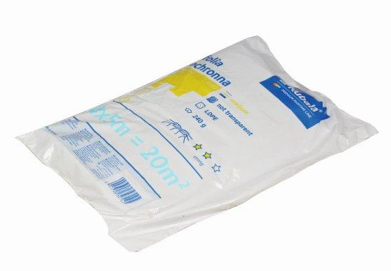 Folia ochronna STRONG, 4x5=20m2, 240g, folia średniej grubości HDPE - do użytku wewnętrznego w gospodarstwach domowych przy malowaniu lub pracach lakierniczych - chroni przed farbą, wilgocią i kurzem przeczytaj całość