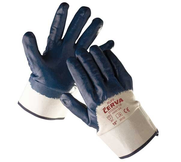 CERVA - RUFF rukavice z bavlněného úpletu nitrilovou dlaní a tuhou manžetou - velikost 11
