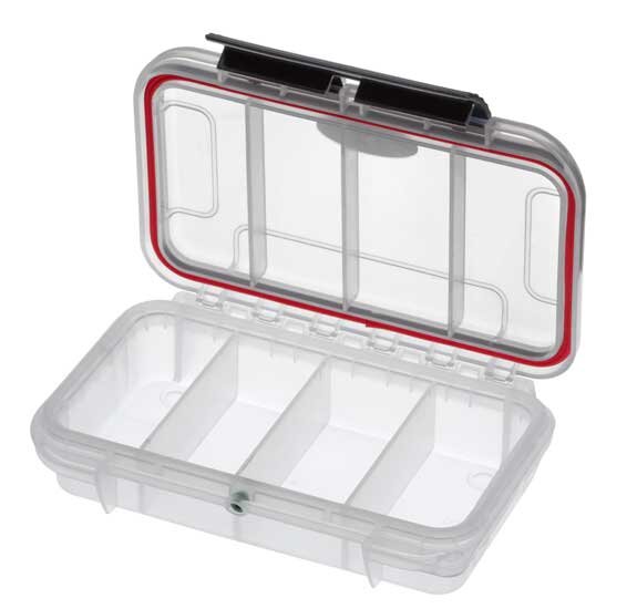MAX plastikowy pojemnik, 175x115xH 47 mm, IP 67, kolor przezroczysty, 4 przegródki - wewnętrzny wymiar 157 x 82 x H 41 mm - odporny na niekorzystne warunki (odporny na wodę, kurz, uderzenia) - IP 67 przeczytaj całość