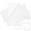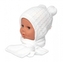 Zimní čepice na zavazování s bambulky + šál - bílá; 56/62 (0-3m)