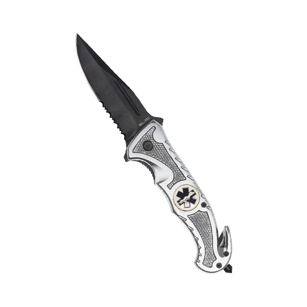 Kvalitní zavírací nůž Rescue od známé firmy Mil-Tec.Je vybaven kombinovanou čepelí, která se skládá z hladkého ostří a pilky.Vlastnosti:• čepel z nerezové oceli• hliníková rukojeť• s úpravou proti vyklouznutí• zadní část rukojeti je vybavena ostřím na řezání plastových pout przeczytaj całość