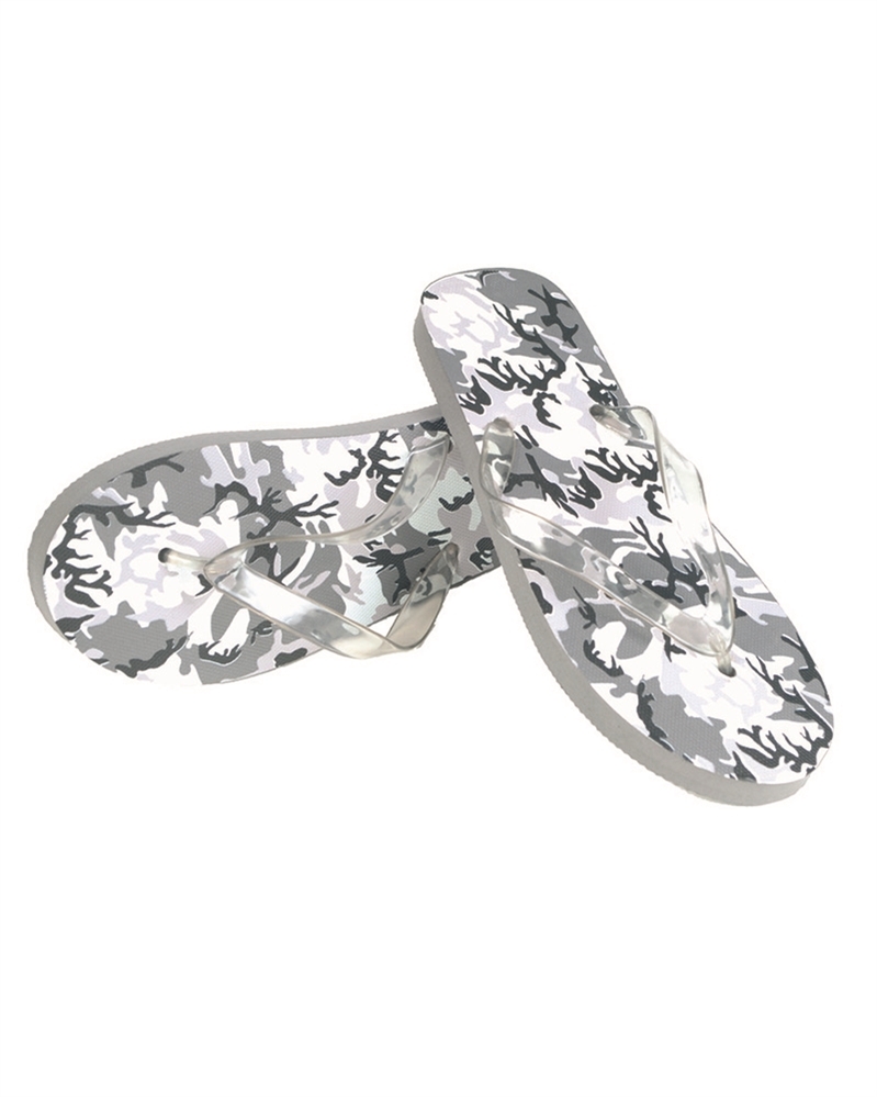Jednoduchá plážová obuv, známá také jako "žabky" v maskovacím provedení. przeczytaj całość