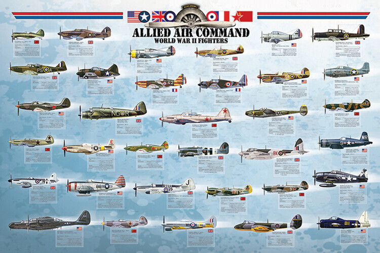 Plakát, Obraz - AlliedAirCommand WWII Fighters, 91.5 × 61 cm