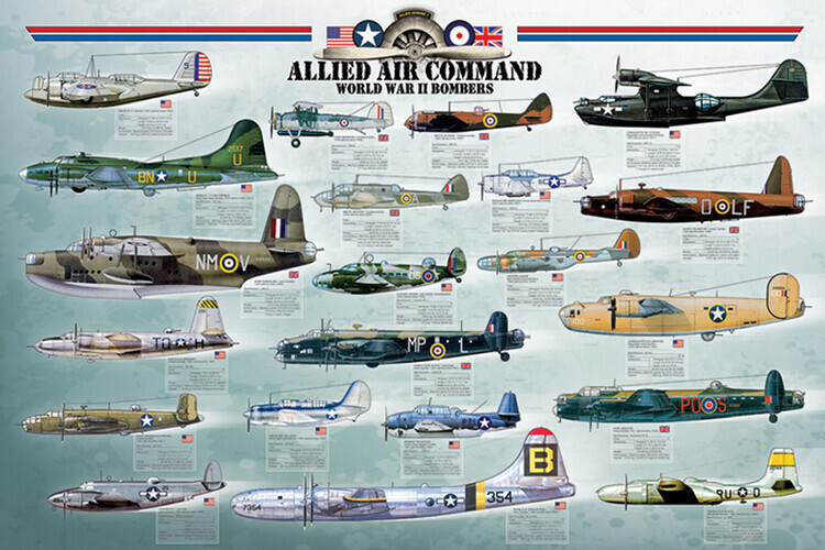 Plakát, Obraz - Allied Air Command WWII Bomber, 91.5 × 61 cm
