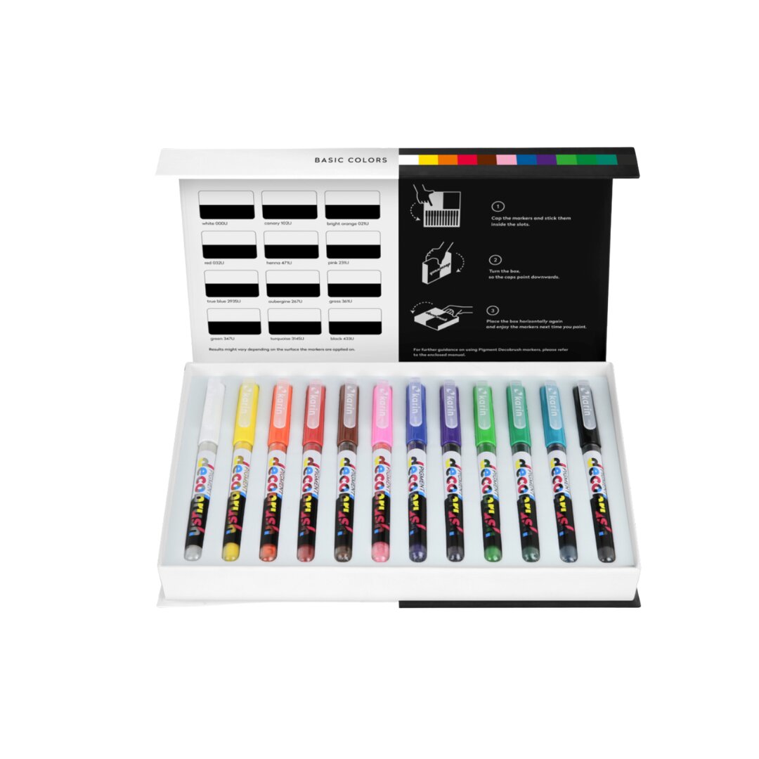 Karin Pigment Deco Brush akrylové fixy sada 12 ks Barvy Karin: 12 BASIC