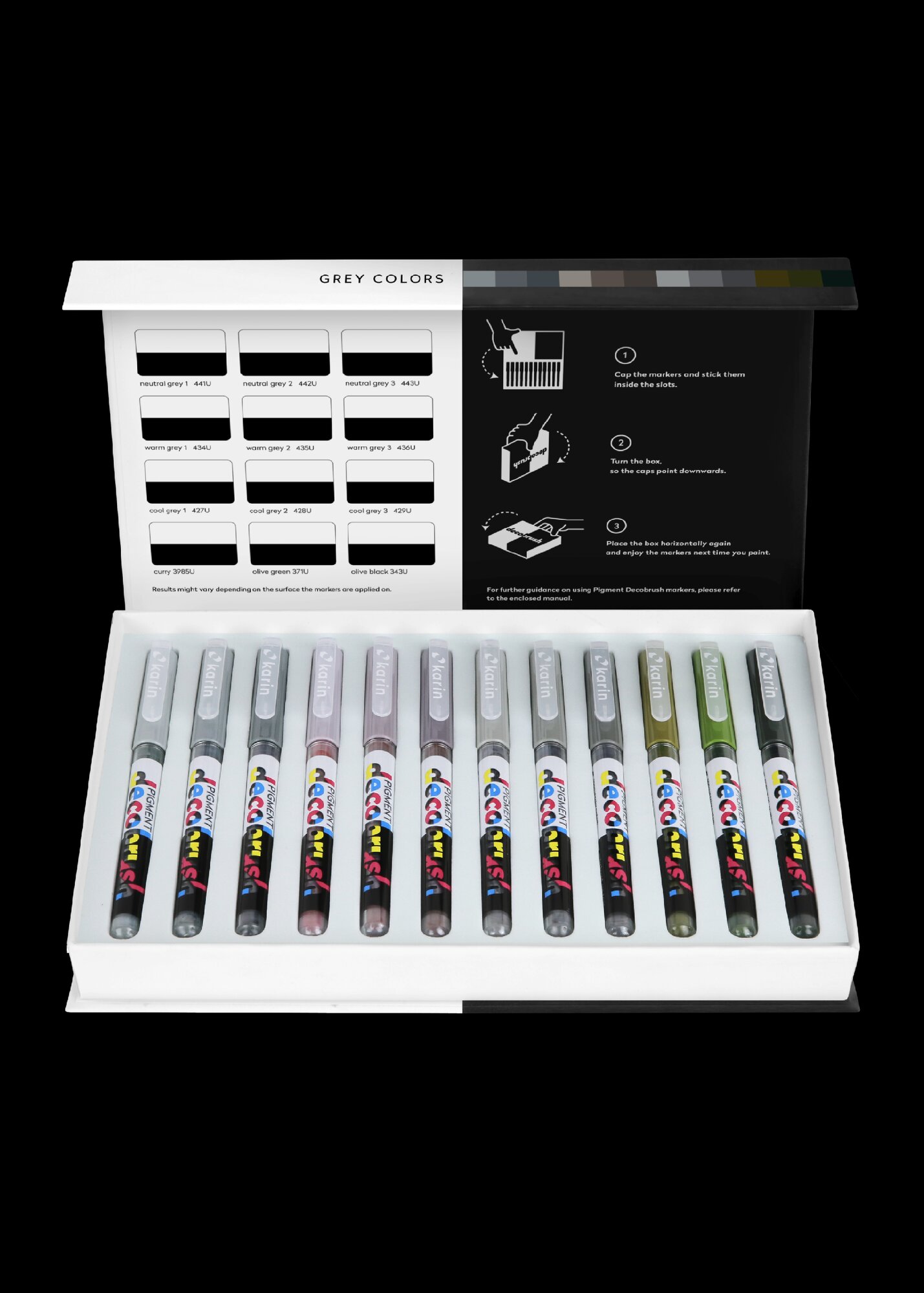 Karin Pigment Deco Brush akrylové fixy sada 12 ks Barvy Karin: 12 GREY