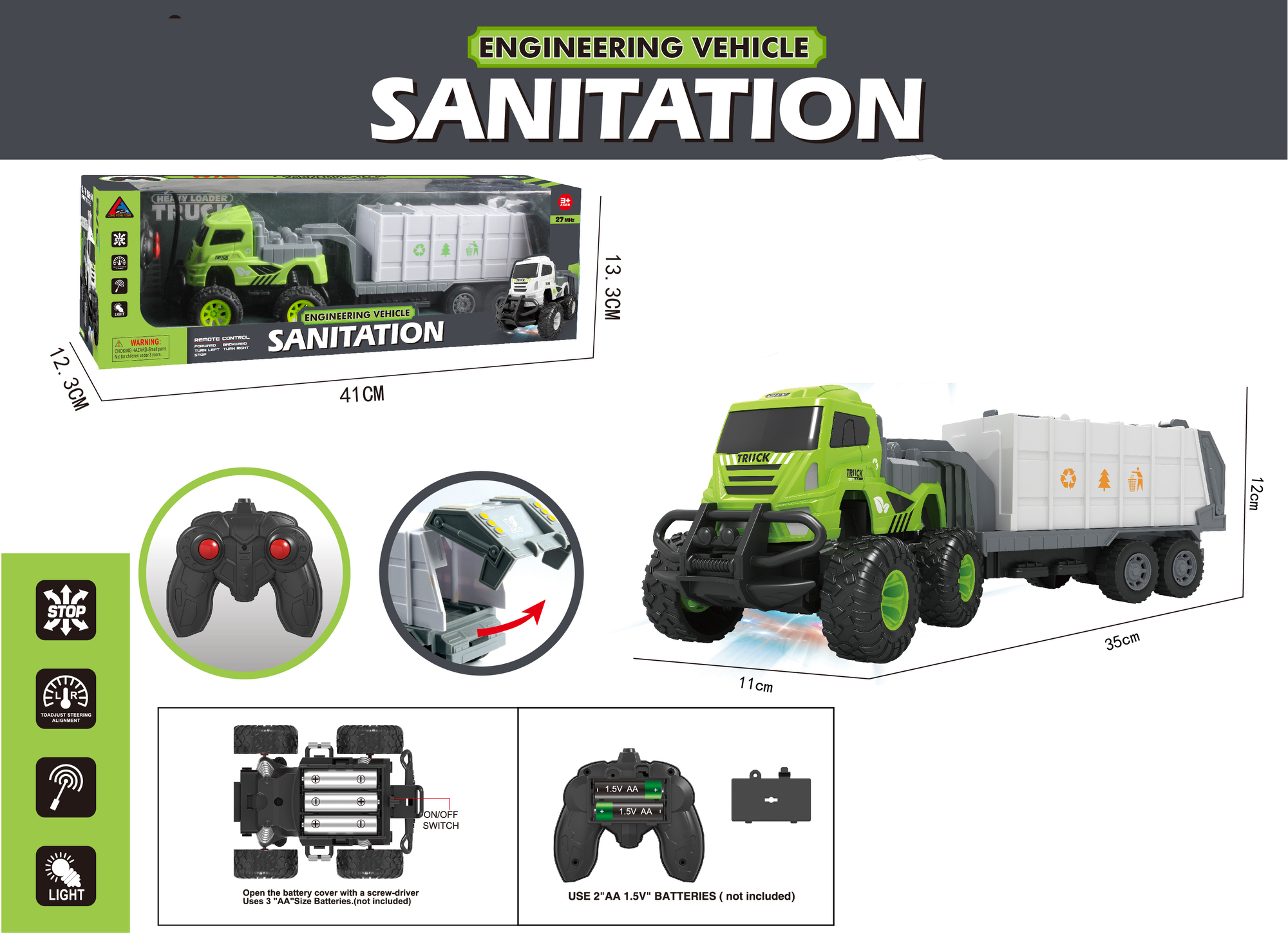 Auto tahač úklidový RC na dálkové ovládání. Rozměry 35x11x12 cm. Světelné efekty. 3xAA baterie do auta, 2xAA do ovladače nejsou součástí. przeczytaj całość
