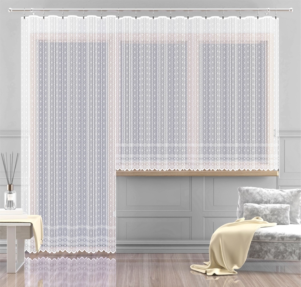 Tato nádherná žakárová záclona v čisté bílé barvě s ozdobným geometrickým vzorem na hrubší síťovině se stane krásným doplňkem v místnosti.ti.Záclona Madison je vyrobená z pevné kvalitní záclonové siťoviny.Dezén navrhli naši designéři pro potřeby českého a slovenského trhu. Okraje záclony mají...