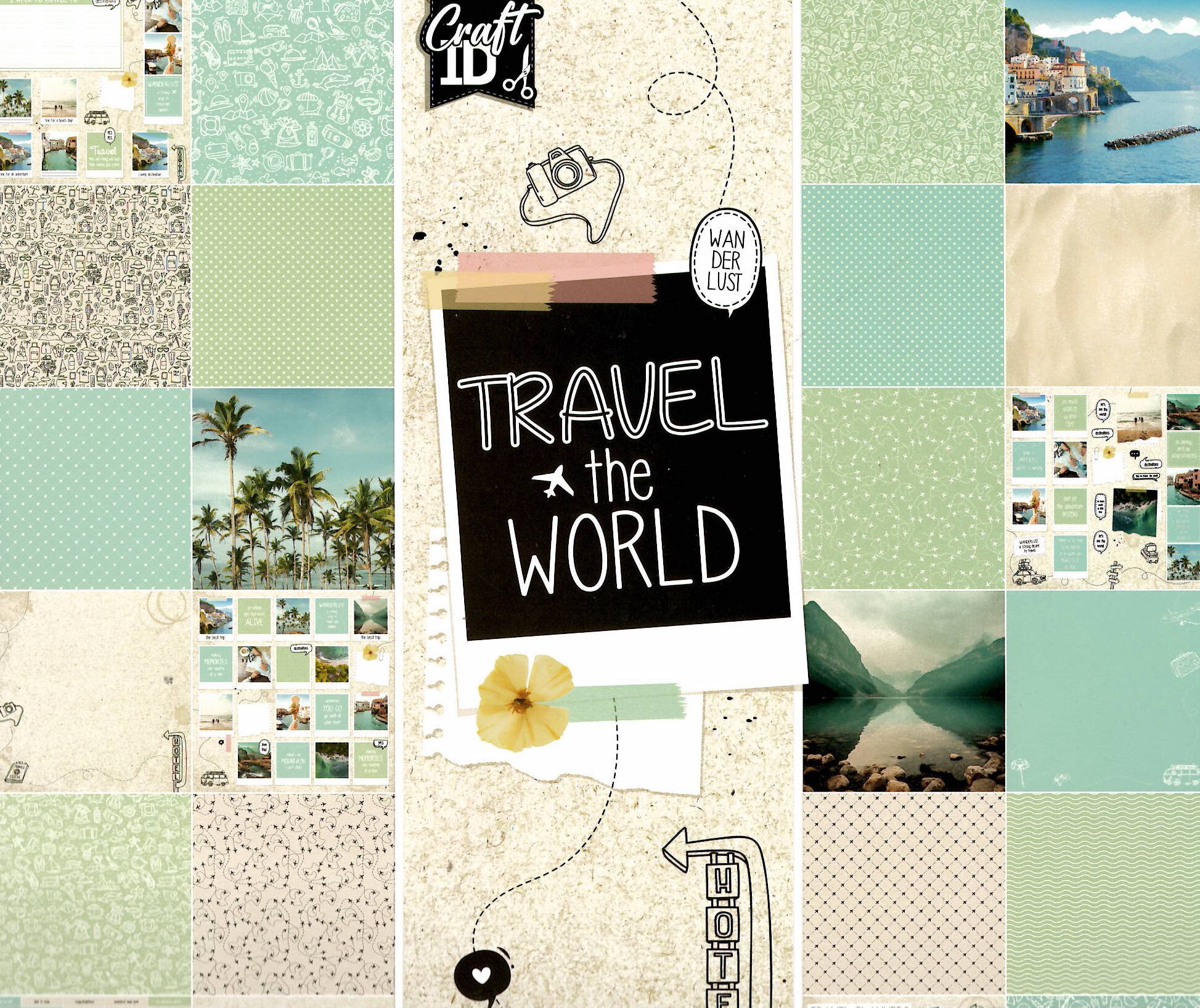 Designový papír 25x25 cm, 250 g/m2,24 listů - cestování