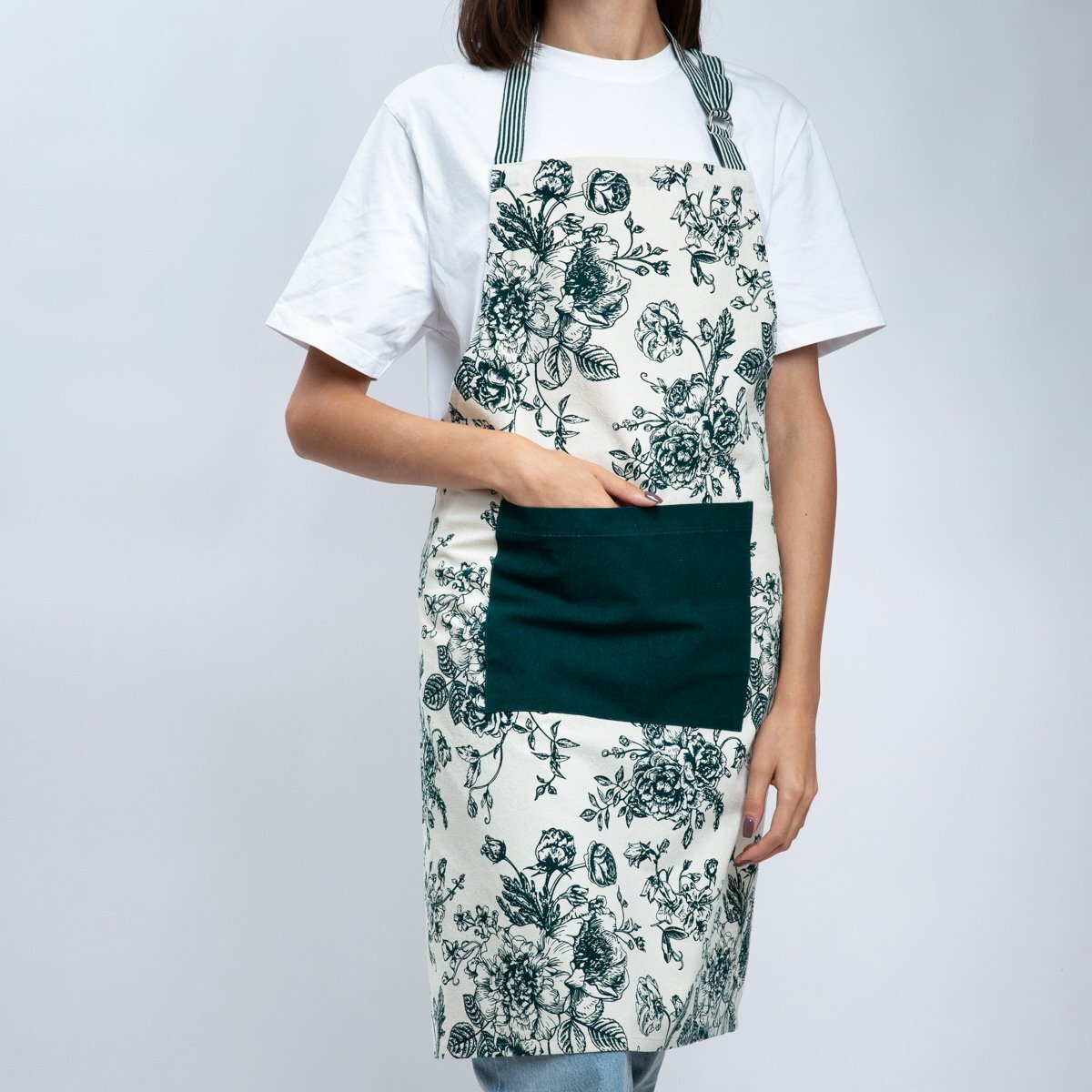 Kuchyňská bavlněná zástěra | NELE | vzor květy zelená | 60x80 cm | 703652 Homla
