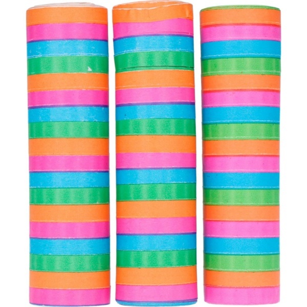Papírové serpentiny s proužky v neonových barvách. hodí se jako universální party dekorace, nebo jako dekorace pro retro disco party. Balení obsahuje tři tuby nařezaných serpentin o délce 400cm. Celkem získáte 54 proužků serpentin. przeczytaj całość