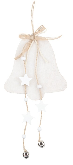 Zvonek dřevěný na zavěšení 11,5 x 20 cm, bílý